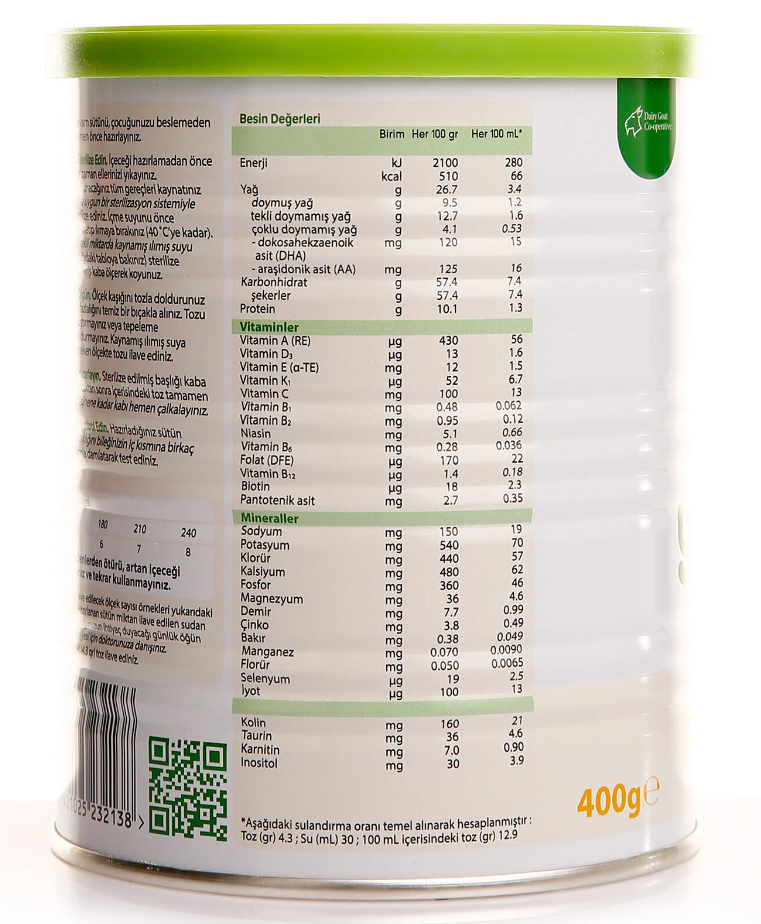 - Protein kaynağı Keçi sütü olduğundan Nükleotidler, poliaminler ve serbest amino asitler gibi biyoaktif bileşikler içeriğinde doğal biçimde mevcuttur.