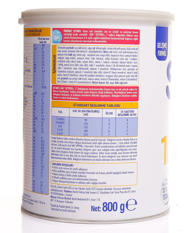 ÖNEMLİ UYARI: Anne sütü bebekler için en iyisidir ve emzirme devam edebildiği kadar etmelidir. SMA® OPTIPRO® 1 sadece doğumdan itibaren anne sütüyle beslenemeyen 0-6 aylık sağlıklı bebeklerin beslenmesinde bağımsız sağlık hizmeti çalışanlarının önerisiyle kullanılmalıdır